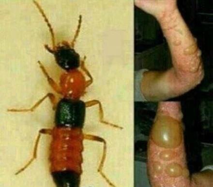 全球发出警示!请传出去! 隐翅虫,在你身上时绝对不要打,她身上有毒液,接触到皮肤,就死定了! 跟你的孩 子、朋友讲,万一身上有这虫,用嘴巴轻轻 吹走就好。绝对不要用手打. 医师强调,如果 每个收到这份微博的人,能够转发十份给其他人,肯定至少有一条生命将会被挽救回来,请转发!